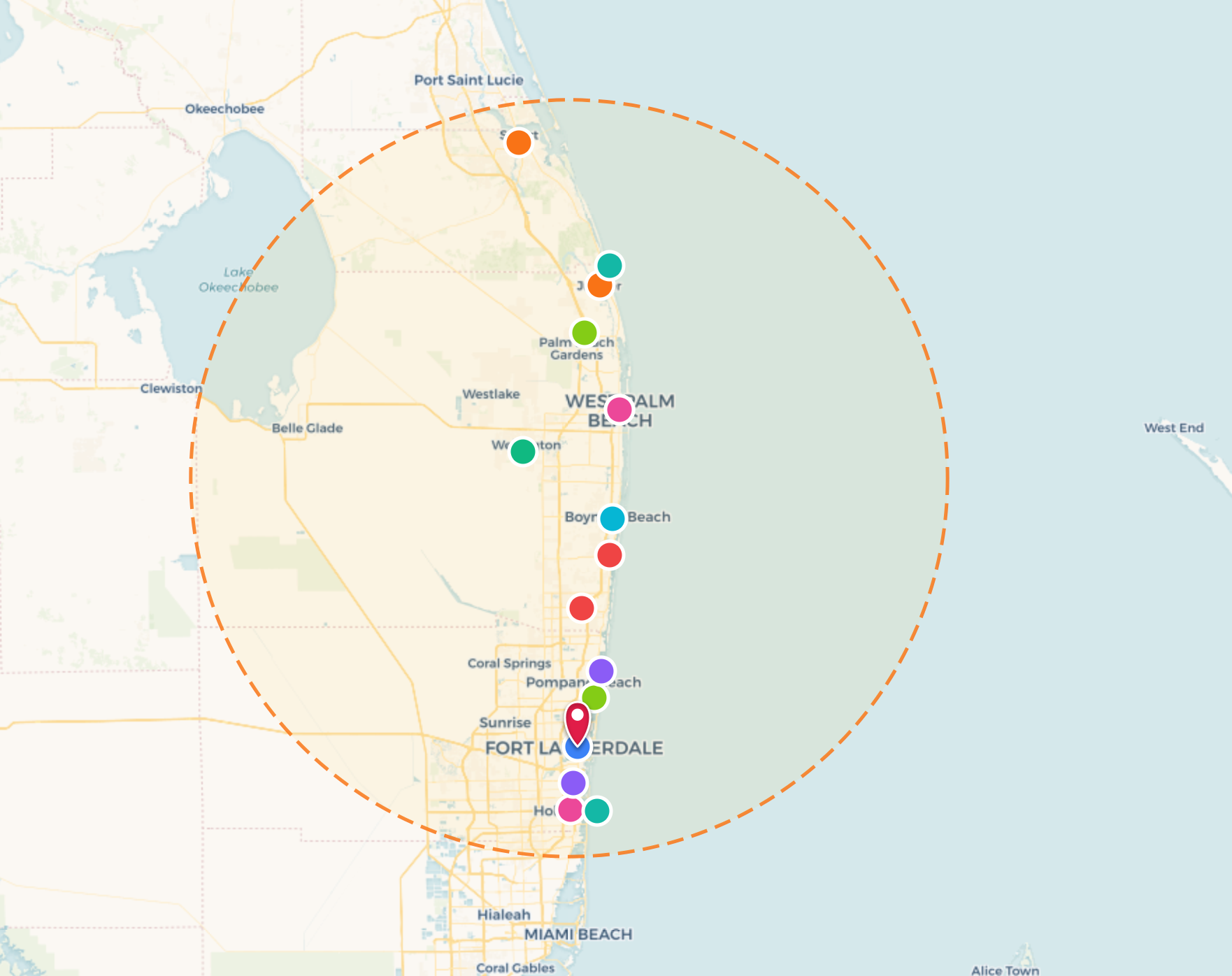 Fort Lauderdale, FL, and all of Palm Beach, Martin, and Broward Counties